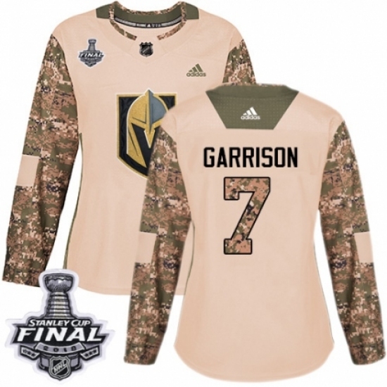 Women's Adidas Vegas Golden Knights #7 Jason Garrison Authentic Camo Veterans Day Practice 2018 Stanley Cup Final NHL Jersey