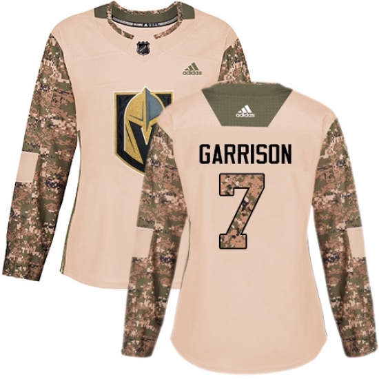 • Women's Adidas Vegas Golden Knights #7 Jason Garrison Authentic Camo Veterans Day Practice NHL Jersey