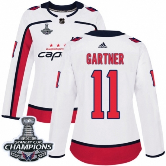• Women's Adidas Washington Capitals #11 Mike Gartner Authentic White Away 2018 Stanley Cup Final Champions NHL Jersey