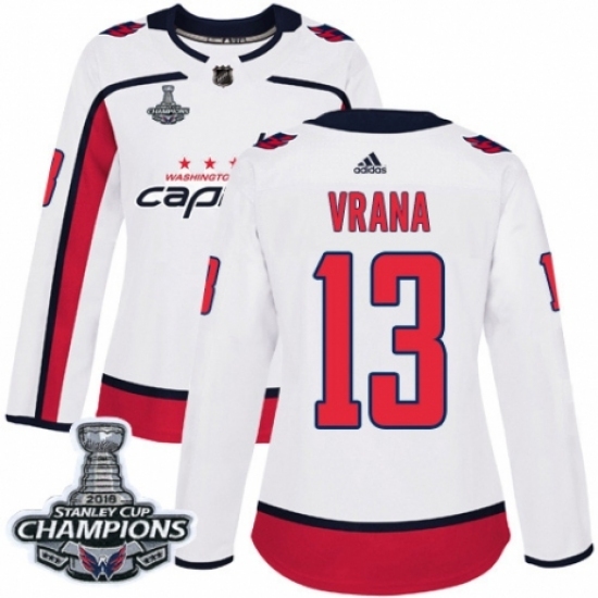 Women's Adidas Washington Capitals #13 Jakub Vrana Authentic White Away 2018 Stanley Cup Final Champions NHL Jersey
