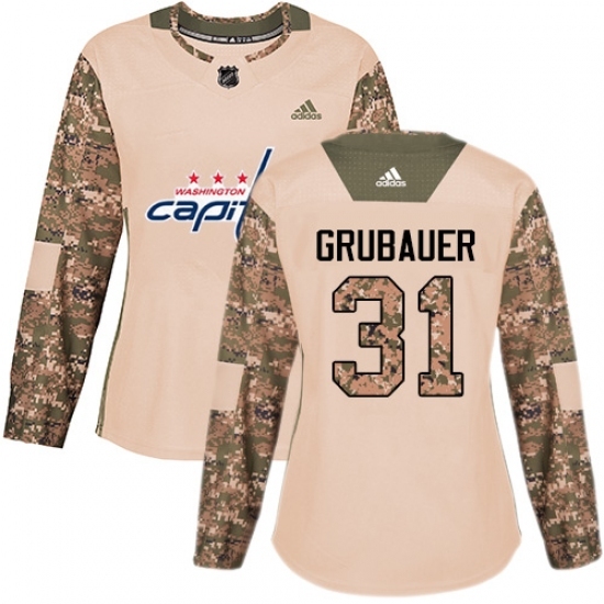 • Women's Adidas Washington Capitals #31 Philipp Grubauer Authentic Camo Veterans Day Practice NHL Jersey
