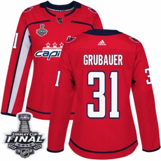 • Women's Adidas Washington Capitals #31 Philipp Grubauer Authentic Red Home 2018 Stanley Cup Final NHL Jersey