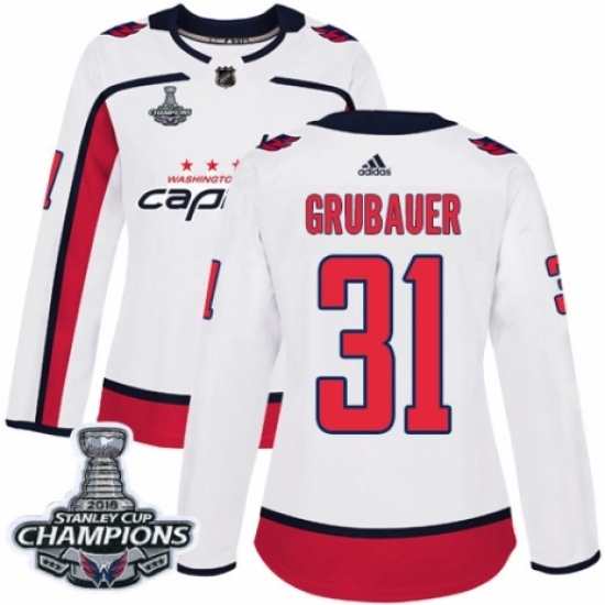Women's Adidas Washington Capitals #31 Philipp Grubauer Authentic White Away 2018 Stanley Cup Final Champions NHL Jersey