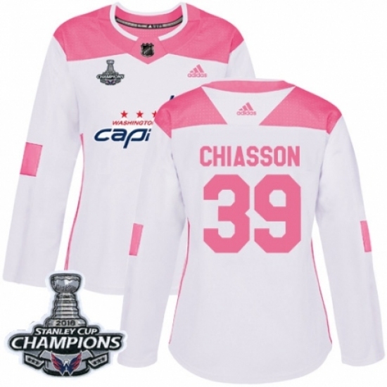 • Women's Adidas Washington Capitals #39 Alex Chiasson Authentic White Pink Fashion 2018 Stanley Cup Final Champions NHL Jersey