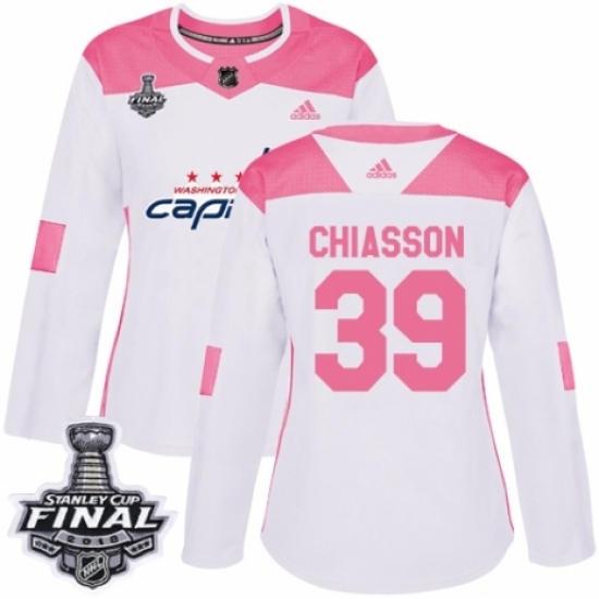 Women's Adidas Washington Capitals #39 Alex Chiasson Authentic White/Pink Fashion 2018 Stanley Cup Final NHL Jersey