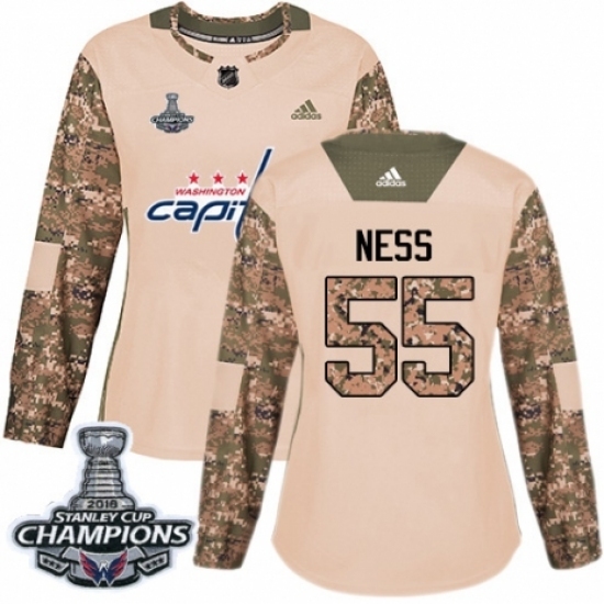 • Women's Adidas Washington Capitals #55 Aaron Ness Authentic Camo Veterans Day Practice 2018 Stanley Cup Final Champions NHL Jersey