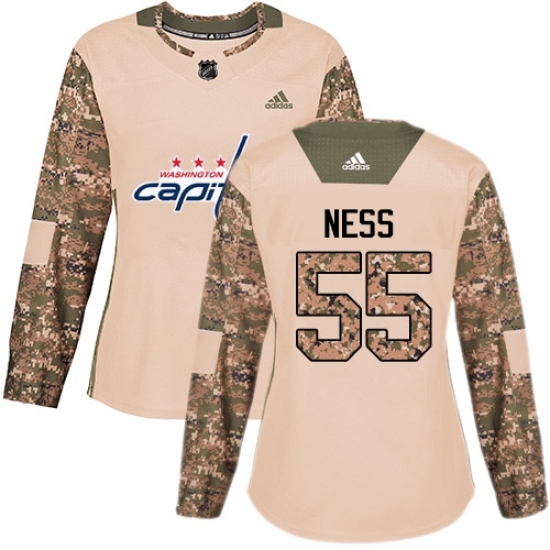 • Women's Adidas Washington Capitals #55 Aaron Ness Authentic Camo Veterans Day Practice NHL Jersey