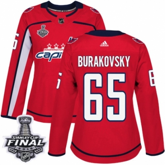 • Women's Adidas Washington Capitals #65 Andre Burakovsky Authentic Red Home 2018 Stanley Cup Final NHL Jersey