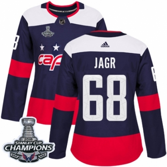 Women's Adidas Washington Capitals #68 Jaromir Jagr Authentic Navy Blue 2018 Stadium Series 2018 Stanley Cup Final Champions NHL Jersey