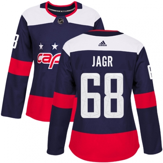 • Women's Adidas Washington Capitals #68 Jaromir Jagr Authentic Navy Blue 2018 Stadium Series NHL Jersey