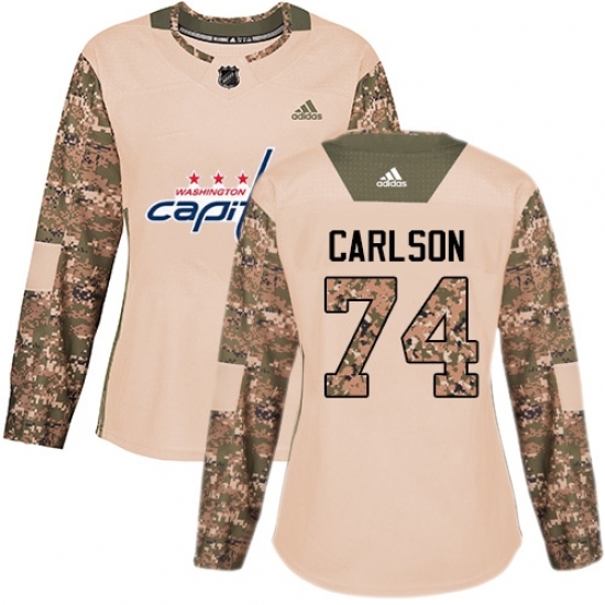 • Women's Adidas Washington Capitals #74 John Carlson Authentic Camo Veterans Day Practice NHL Jersey