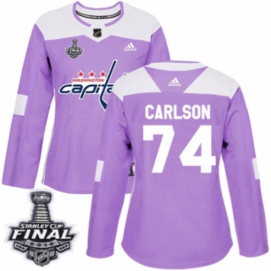 • Women's Adidas Washington Capitals #74 John Carlson Authentic Purple Fights Cancer Practice 2018 Stanley Cup Final NHL Jersey