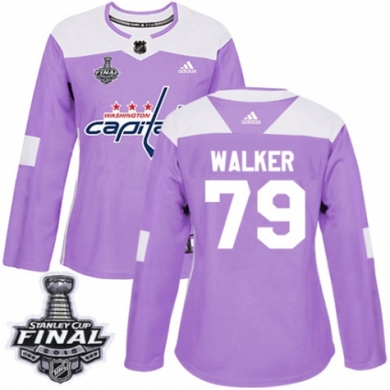 • Women's Adidas Washington Capitals #79 Nathan Walker Authentic Purple Fights Cancer Practice 2018 Stanley Cup Final NHL Jersey
