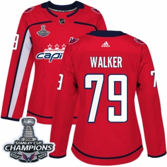 • Women's Adidas Washington Capitals #79 Nathan Walker Authentic Red Home 2018 Stanley Cup Final Champions NHL Jersey