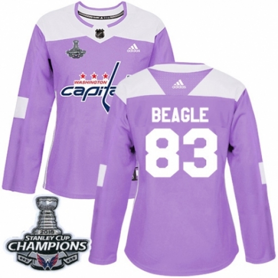 • Women's Adidas Washington Capitals #83 Jay Beagle Authentic Purple Fights Cancer Practice 2018 Stanley Cup Final Champions NHL Jersey