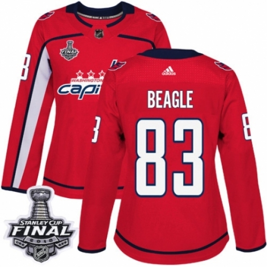 Women's Adidas Washington Capitals #83 Jay Beagle Authentic Red Home 2018 Stanley Cup Final NHL Jersey