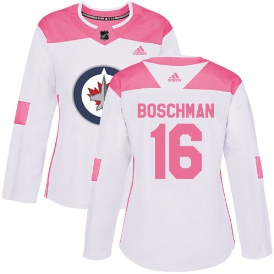 Women's Adidas Winnipeg Jets #16 Laurie Boschman Authentic White/Pink Fashion NHL Jersey