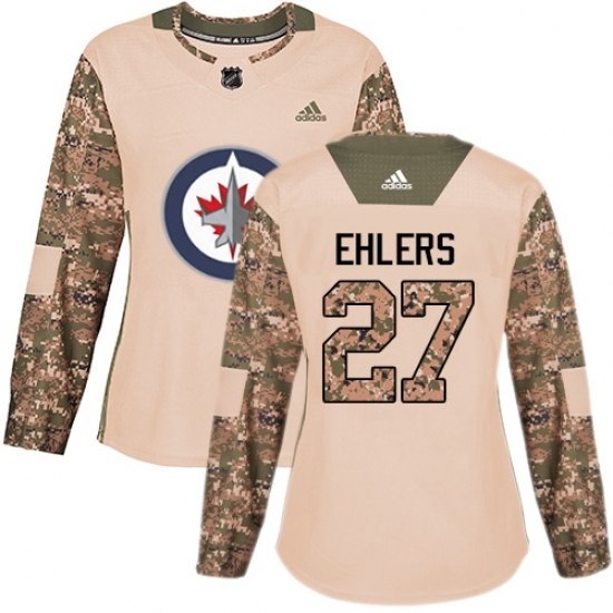 • Women's Adidas Winnipeg Jets #27 Nikolaj Ehlers Authentic Camo Veterans Day Practice NHL Jersey