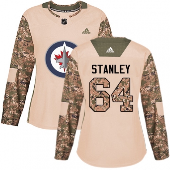 Women's Adidas Winnipeg Jets #64 Logan Stanley Authentic Camo Veterans Day Practice NHL Jersey