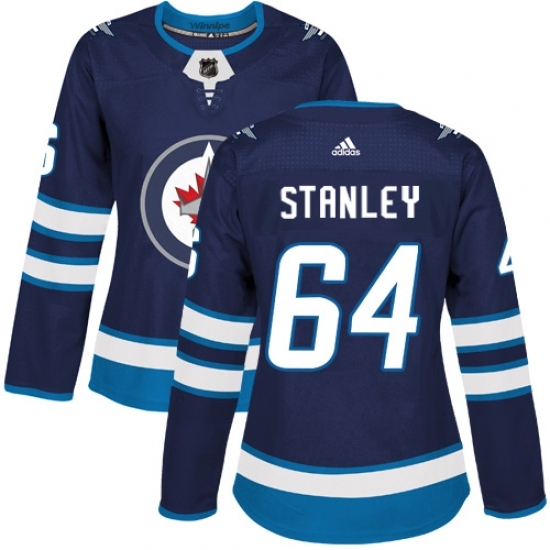 Women's Adidas Winnipeg Jets #64 Logan Stanley Premier Navy Blue Home NHL Jersey