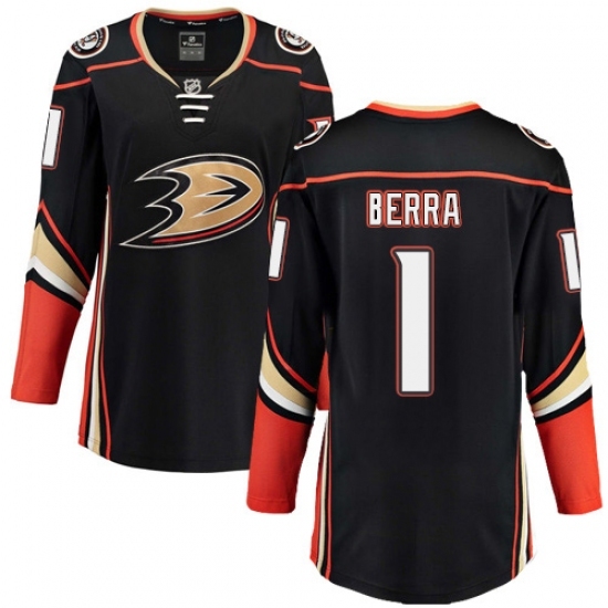 • Women's Anaheim Ducks #1 Reto Berra Fanatics Branded Black Home Breakaway NHL Jersey