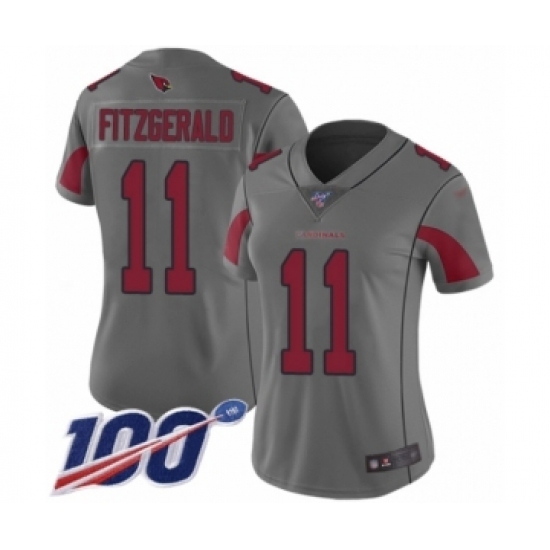 Women's Arizona Cardinals #11 Larry Fitzgerald Limited Silver Inverted Legend 100th Season Football Jersey