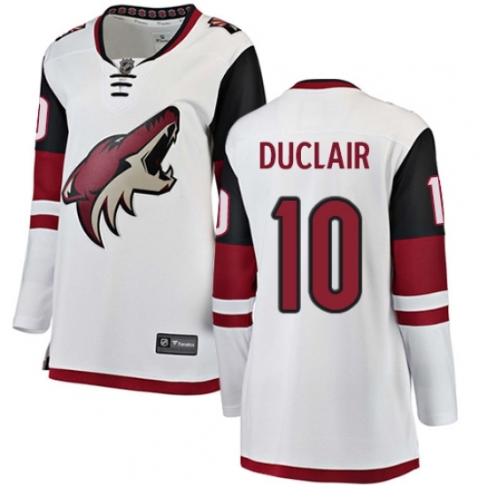 • Women's Arizona Coyotes #10 Anthony Duclair Authentic White Away Fanatics Branded Breakaway NHL Jersey