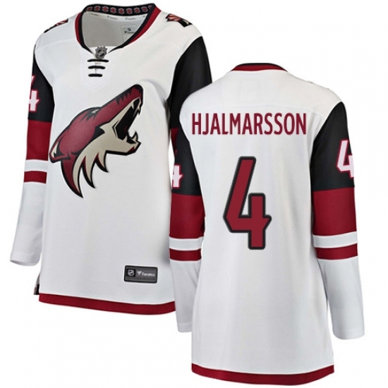 Women's Arizona Coyotes #4 Niklas Hjalmarsson Authentic White Away Fanatics Branded Breakaway NHL Jersey