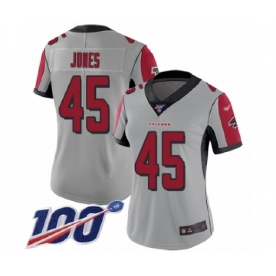 Women's Atlanta Falcons #45 Deion Jones Limited Silver Inverted Legend 100th Season Football Jersey
