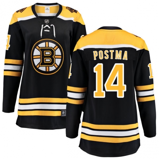 • Women's Boston Bruins #14 Paul Postma Authentic Black Home Fanatics Branded Breakaway NHL Jersey