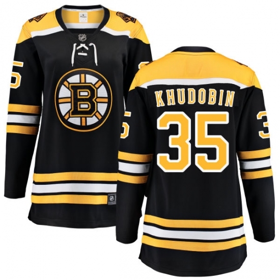 • Women's Boston Bruins #35 Anton Khudobin Authentic Black Home Fanatics Branded Breakaway NHL Jersey