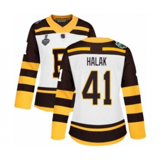 • Women's Boston Bruins #41 Jaroslav Halak Authentic White Winter Classic 2019 Stanley Cup Final Bound Hockey Jersey