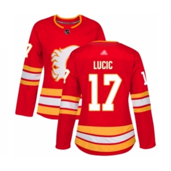 Women's Calgary Flames #17 Milan Lucic Authentic Red Alternate Hockey Jersey