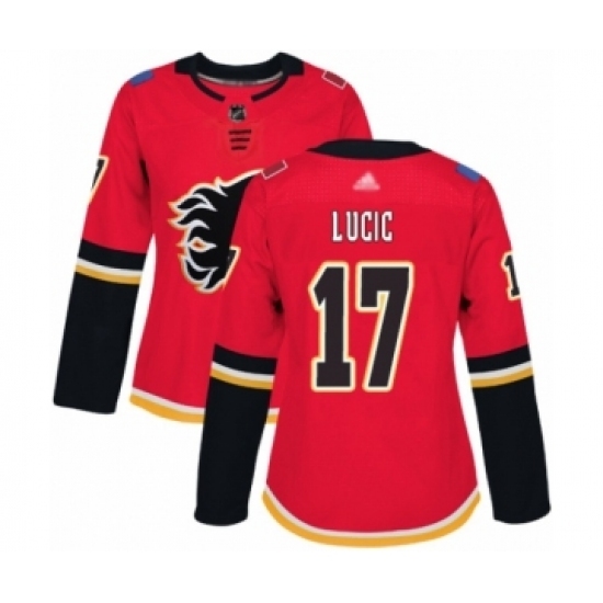 Women's Calgary Flames #17 Milan Lucic Authentic Red Home Hockey Jersey