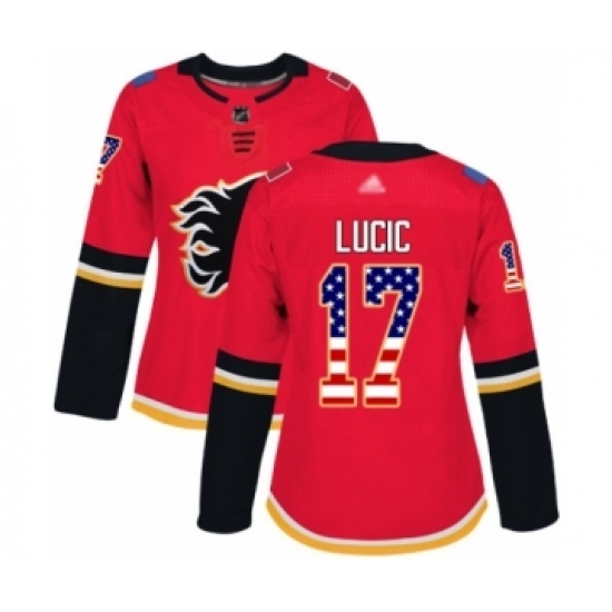 Women's Calgary Flames #17 Milan Lucic Authentic Red USA Flag Fashion Hockey Jersey