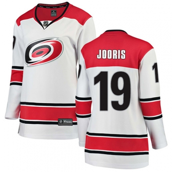 • Women's Carolina Hurricanes #19 Josh Jooris Authentic White Away Fanatics Branded Breakaway NHL Jersey