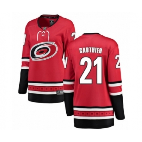 Women's Carolina Hurricanes #21 Julien Gauthier Authentic Red Home Fanatics Branded Breakaway NHL Jersey