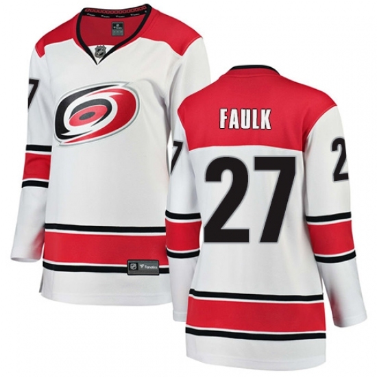 Women's Carolina Hurricanes #27 Justin Faulk Authentic White Away Fanatics Branded Breakaway NHL Jersey