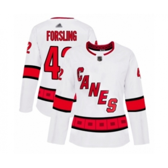 Women's Carolina Hurricanes #42 Gustav Forsling Authentic White Away Hockey Jersey