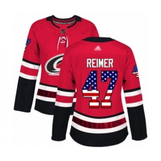 Women's Carolina Hurricanes #47 James Reimer Authentic Red USA Flag Fashion Hockey Jersey