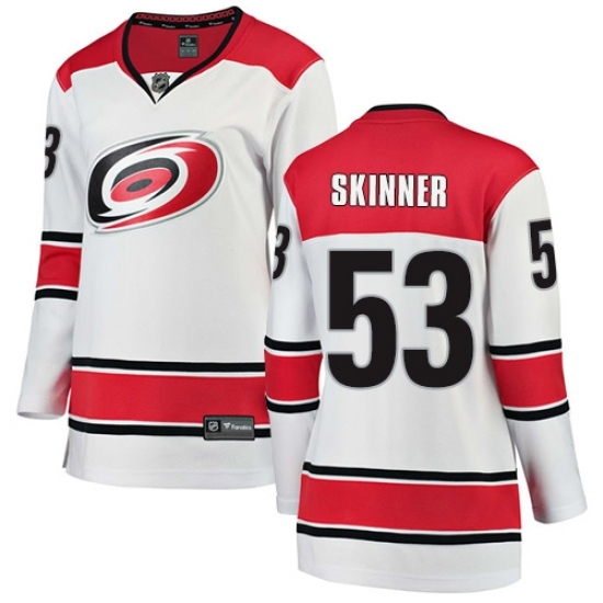 • Women's Carolina Hurricanes #53 Jeff Skinner Authentic White Away Fanatics Branded Breakaway NHL Jersey