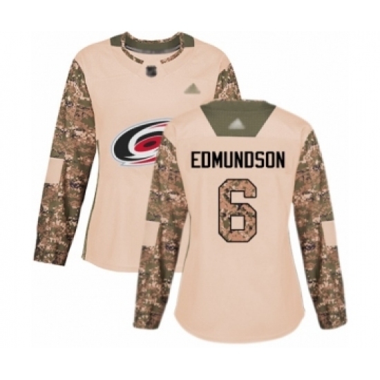 • Women's Carolina Hurricanes #6 Joel Edmundson Authentic Camo Veterans Day Practice Hockey Jersey