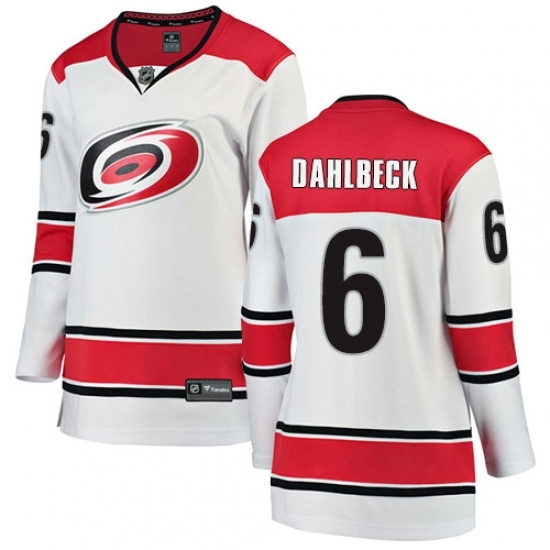 • Women's Carolina Hurricanes #6 Klas Dahlbeck Authentic White Away Fanatics Branded Breakaway NHL Jersey