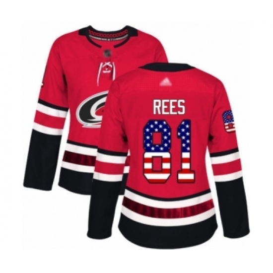 Women's Carolina Hurricanes #81 Jamieson Rees Authentic Red USA Flag Fashion Hockey Jersey
