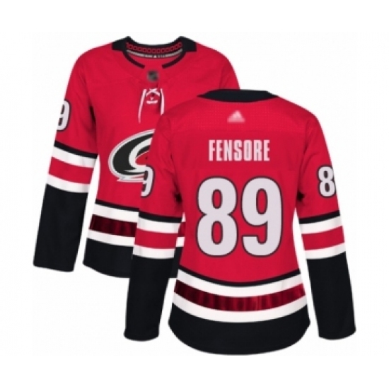 Women's Carolina Hurricanes #89 Domenick Fensore Authentic Red Home Hockey Jersey