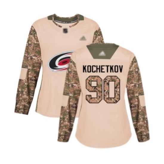 • Women's Carolina Hurricanes #90 Pyotr Kochetkov Authentic Camo Veterans Day Practice Hockey Jersey