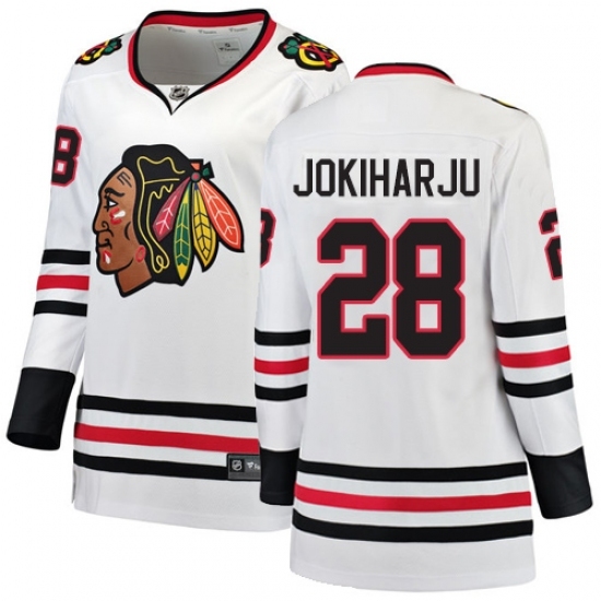 • Women's Chicago Blackhawks #28 Henri Jokiharju Authentic White Away Fanatics Branded Breakaway NHL Jersey