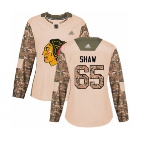 Women's Chicago Blackhawks #65 Andrew Shaw Authentic Camo Veterans Day Practice Hockey Jersey