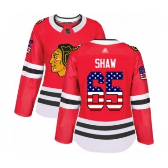 • Women's Chicago Blackhawks #65 Andrew Shaw Authentic Red USA Flag Fashion Hockey Jersey