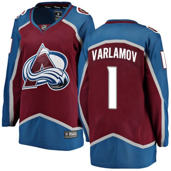 • Women's Colorado Avalanche #1 Semyon Varlamov Fanatics Branded Maroon Home Breakaway NHL Jersey